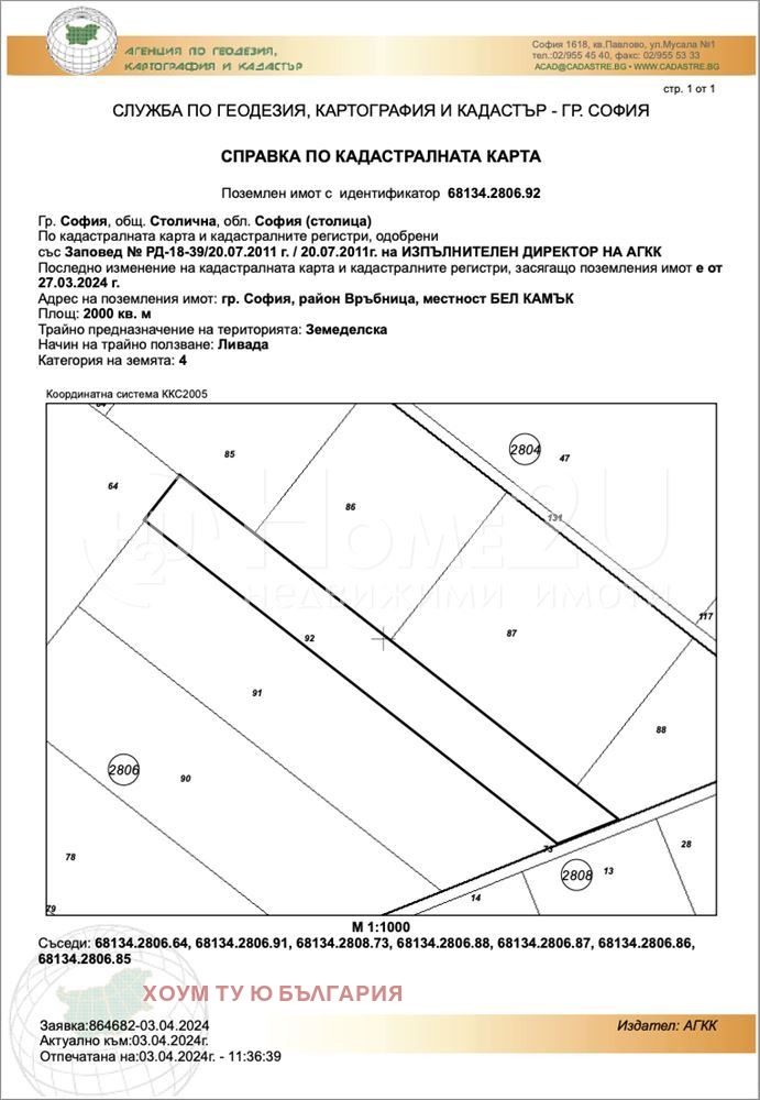 Home2U предлага за продажба: Земеделска земя, тип ЛИВАДА, Категория 4, находяща се в Район Връбница, местност БЕЛ КАМЪК.