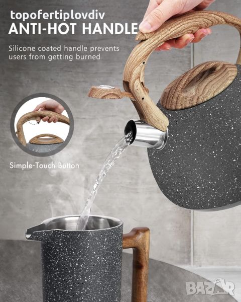 чайник е достатъчно силен, за да можете да чуете свирката с много фонов шум. Свирката на този чайник ще привлече вниманието ви, докато се фокусирате върху други теми като домакинска работа, филми или игри в същото време. Лесно и спестяващо време, без стрес.