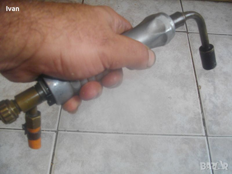 ОПИСАНИЕ на газова горелка - 129 лв. Немско професионално производство от старото качество. Масивна ,изцяло алуминиева. Въртяща се на 360 градуса. Регулатор отзад спирателен кран бронзови. Бронзово рамо и бронзова контакна дюза ф 18 мм с 1 голяма дупка за пламъка. Марка на горелката - DRAGER.Мяркировки от двете страни на тялото. Дължина 285 мм. Поставен оригинален бронзов щуцер за маркуч със скоба ф 10 мм. Тегло на горелката - 0,5 кг.
