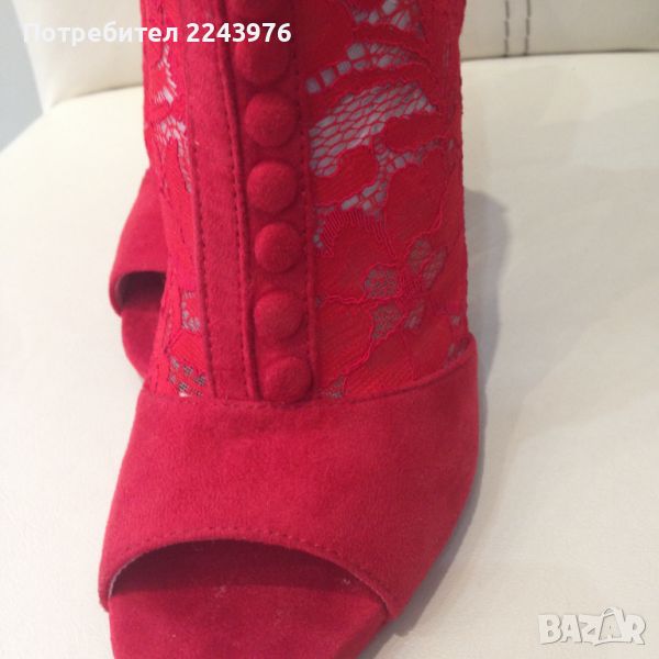 Дамски боти от велур и дантела.Нови. Височина на тока 11см. Дължина на стелката 24см.