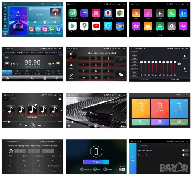 Най-високо качество на части, материали и пластмаса на изработка на мултимедията, хубав голям алуминиев охладител, WIFI, Андроид, MirrorLink, Bluetooth, USB, GPS, бърза RAM, цената е за цял комплект.