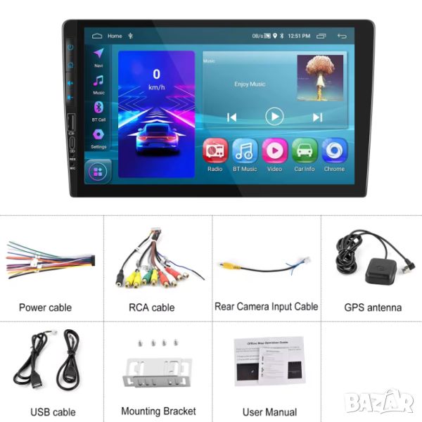 Уникален единичен дин с Андроид, стандартен универсален размер с голям 9 инчов екран! Меню на български! USB за флашки и зареждане на устройства.