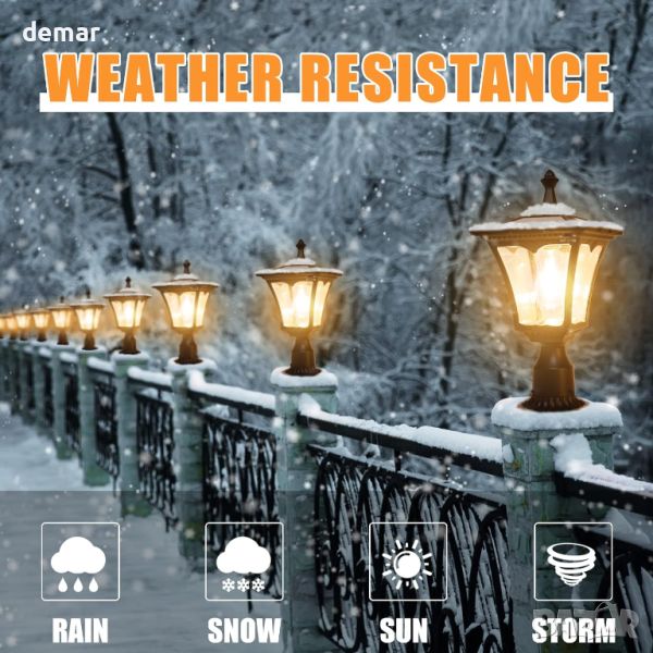 Алуминиева лампа за градински лампи, включваща абажури от прозрачно стъкло и супер ярка LED крушка, захранвана от водоустойчив соларен панел. С изход до 300 LED лумена всяка вечер в продължение на 8 часа при пълно зареждане, тази универсална светлина пасва на стандартни 3” осветителни стълбове и 4”-6” колони, предлагайки слънчева енергия без електричество. 4 пъти по-ярката ретро LED опция осигурява 300 лумена бяла или топла бяла светлина, идеална за целогодишно осветление с пряка слънчева светлина. Изработени от издръжлив лят алуминий и водоустойчиви, тези светлини разполагат с мощни литиево-йонни батерии от 3000 mAh и 4W LED крушки, осигуряващи удобно сияние и спестяване на енергия. Изберете между топла бяла или чисто бяла светлина, която да подхожда на вашата градинска атмосфера. С IP44 устойчивост на атмосферни влияния, тези светлини издържат на дъжд, сняг и силни ветрове, лесно се почистват за оптимална работа. Идеални за декорация на градини, морави и дворове, тези захранвани със слънчева енергия лампи предлагат надеждно декоративно осветление всеки ден от годината.