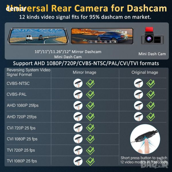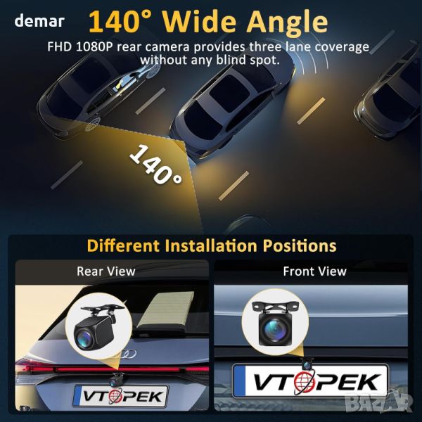 Камера за задно виждане Vtopek P062, проектирана да бъде първата универсална задна камера, подходяща за 95% от видеорегистраторите на пазара. С 4-пинов интерфейс, поддържащ множество формати, включително AHD 1080P/720P/CVBS-NTSC/PAL/CVI/TVI, той гарантира съвместимост, като същевременно предлага широкоъгълен изглед от 140° за по-безопасно движение на заден ход. Пакетът включва 8 м удължителен кабел за удобен монтаж. С HD резолюция 1960*1080P, той предоставя ясни изображения през деня и нощта, съвместим с различни превозни средства и оборудван с WDR технология за подобрена яснота при условия на слаба светлина. С IP68 водоустойчив рейтинг и здрав метален корпус, той гарантира издръжливост и стабилност при всякакви метеорологични условия, което го прави надежден избор за по-безопасно шофиране.