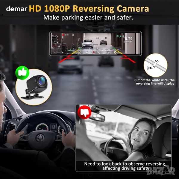 Vtopek Камера за огледало за обратно виждане HD 1080P, 12-24V с 8 м кабел