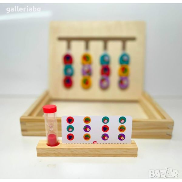 Четирицветна логическа игра с дейност с пясъчен часовник и логическа игра за деца.