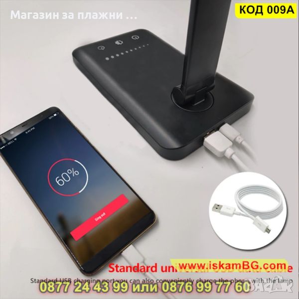Акумулаторна батерия осигуряваща до 10 часа време на работа без захранване (важни само за опцията "С БАТЕРИЯ + USB ЗАХРАНВАНЕ")