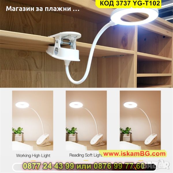 Лед ринг лампа с щипка - 1 брой