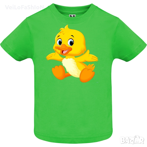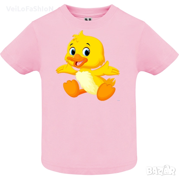 Новa бебешка тениска в розов, син или зелен цвят с Патенце,произведена от 100% памук с плътност на тениската 160гр./м². Тениската е с къс ръкав и с тик-так копчета на рамото за лесно обличане.