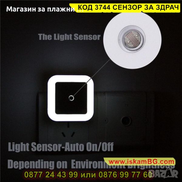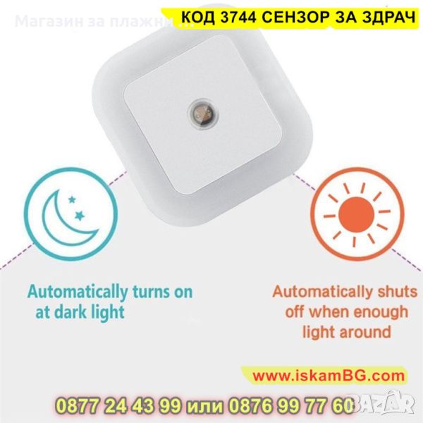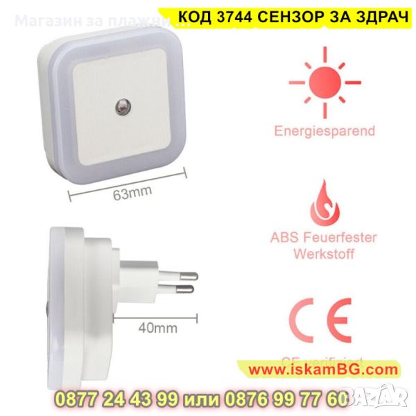 LED лампа за контакт със сензор за включване и изключване - КОД 3744 СЕНЗОР ЗА ЗДРАЧ