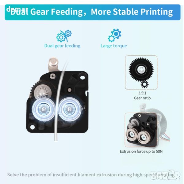 100% официален екструдер Hummingbird на Creality, проектиран за безпроблемна съвместимост с 3D принтери Creality K1/K1 MAX. Неговата инсталация е лесна, не изисква корекции на фърмуера или софтуера. Екструдерът гарантира целостта на нишката, като се отличава със стабилно и прецизно подаване благодарение на своя дизайн с двойна предавка с висок въртящ момент, осигуряващ до 50N сила на екструдиране. Компактното изцяло метално тяло улеснява ефективното разсейване на топлината, насърчавайки плавен печат и изящни детайли на модела. Съвместим с широка гама от нишки, включително PLA, PLA+, Hyper, TPU, PETG и ABS, екструдерът Hummingbird предлага гъвкавост заедно с изключителната си производителност.