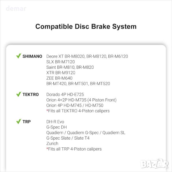 For Shimano Deore XT BR-M8020, BR-M8120, BR-M6120, SLX BR-M7120 ; Saint BR-M810, BR-M820 ; XTR BR-M9120 ; ZEE BR-M640 ; BR MT420 / MT520