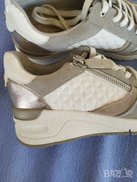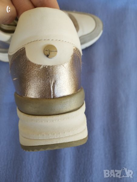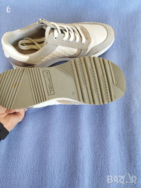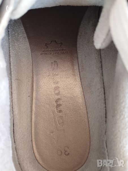 Обувките Тамарис са обувани броени пъти.В отлично състояние са.Изработени са от мека естествена кожа.Номер 39 с дължина на стелката 25,5см.Бял и сив цвят.Атрактивен модел.Цена 60лв.
