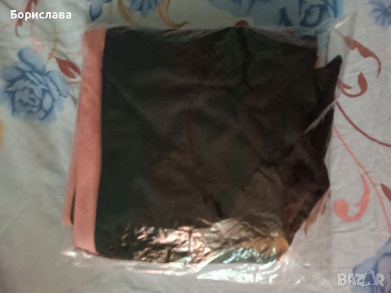 Блуза с къс ръкав, дълга дължина и затворено деколте.Само пробван, по етикет е ХХЛ, но определено отговоря на М или Л при въпроси пишете!
