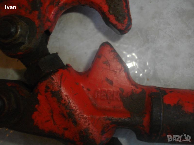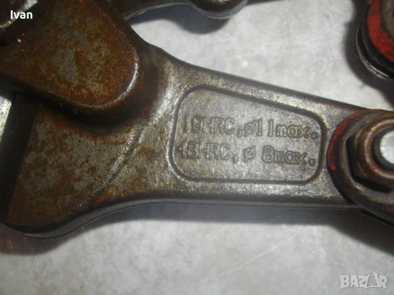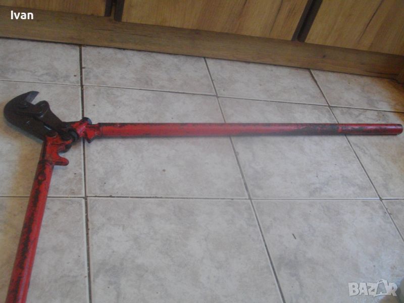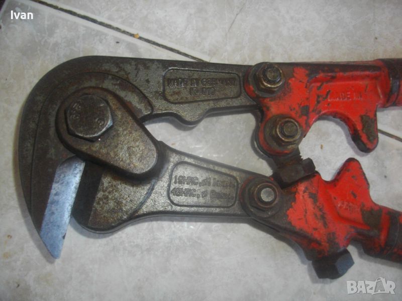 ОПИСАНИЕ на голяма масивна немска ножица 930 мм с извита челюст - 199 лв. Професионална. Made in GERMANY. E 33 - 2A. Отлично състояние. Без абсолютни накакви наранявания по остриетата на челюстите. Дължина 930 мм. Реже арматура ф 8 мм - 19 HRC и арматура ф 11 мм - 48 HRC. Дължина 930 мм. Дръжки тръби ф 25 мм. Извита челюст за по лесно рязане. Тегло - 4,5 кг. Отлично състояние /визуално и работно техническо/.