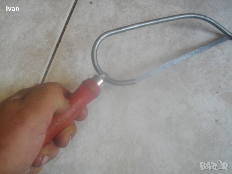 ОПИСАНИЕ на ръчна мини ножовка - 79 лв. Фреска професионална. Старо качество. Масивна. Ползвана, почти нова. Отлично състояние - визуално и техническо/работно. Не се огъва при рязане/работа. Цялостна дължина 290 мм, ширина 70 мм, лист сменяем за рязане - дължина 150 мм. Марка на инструмента - PUK. Дървена дръжка, на която стой оригиналната червена боя.