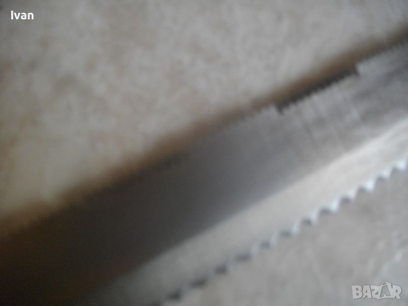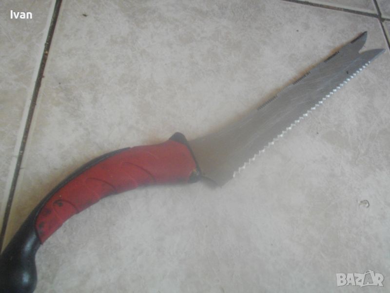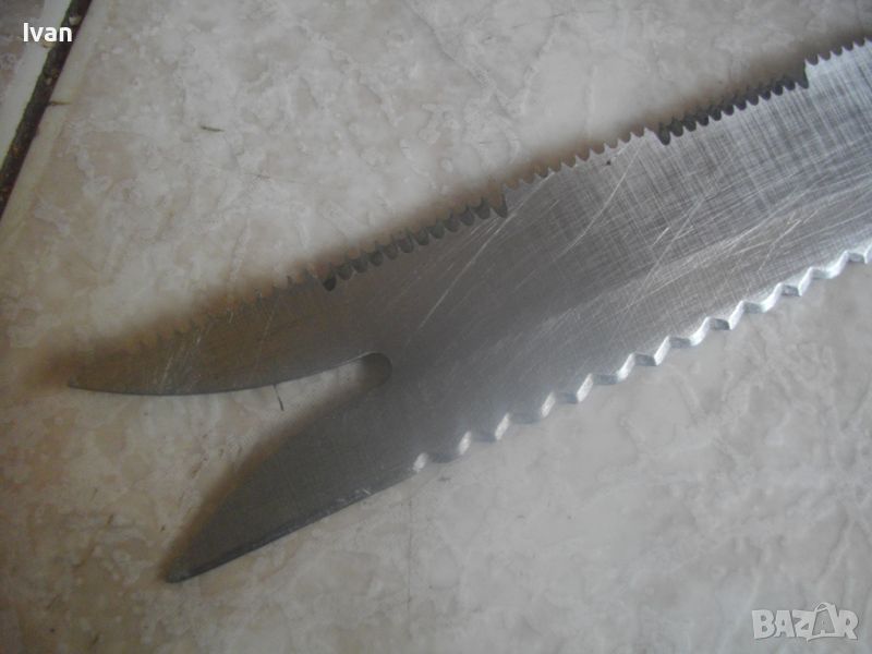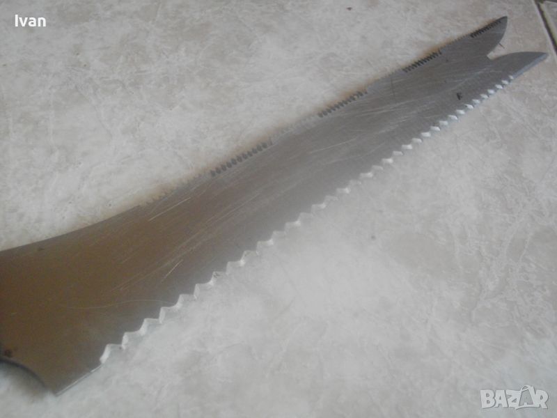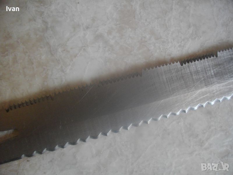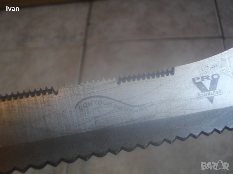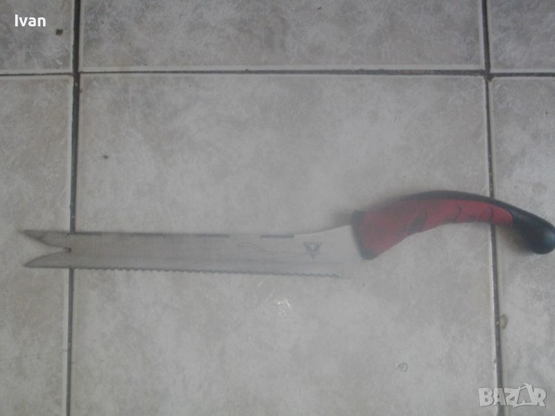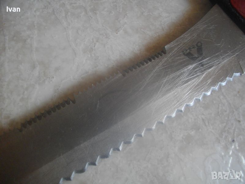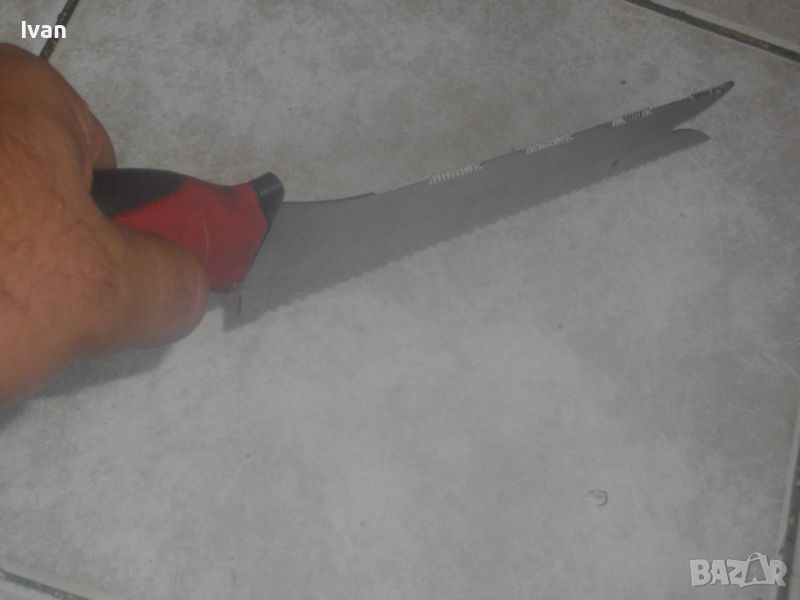ОПИСАНИЕ на строителен нож - 79 лв. Масивен, високо качество, висок клас. Не се огъва. Цялостна дължина - 380 мм, острие - 235 мм. Маркировки по него - PRO STAINLESS - CONTROUR PRO KNIFE TM - STAINLESS STEEL. Ползван, със запазен външен вид и отлично техническо/работно състояние. За рязане на строителна вата, пяна и други различни материали. Масивно заточване лазерно двустранно. Мека гумирана дръжка. Остриетата са без никакви забележки.