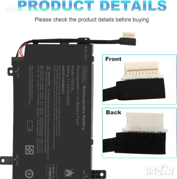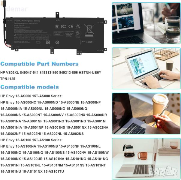 Съвместим номер на част: VS03XL VSO3XL HSTNN-UB6Y TPN-I125 849047-541 849313-850 849313-856 849313850 3ICP7/61/80