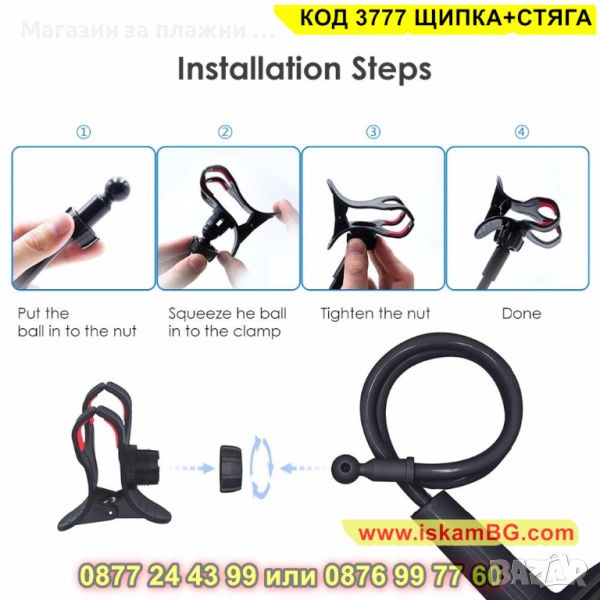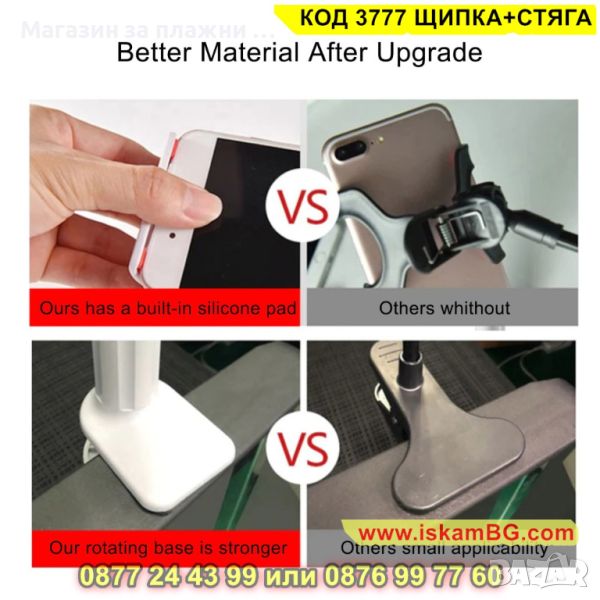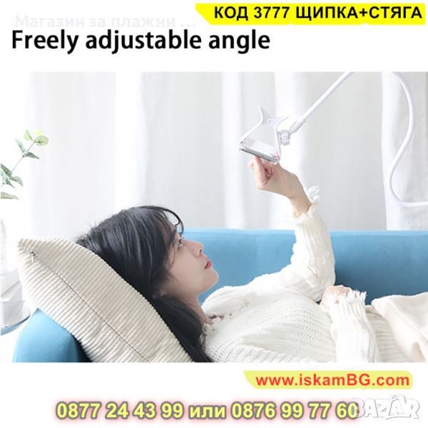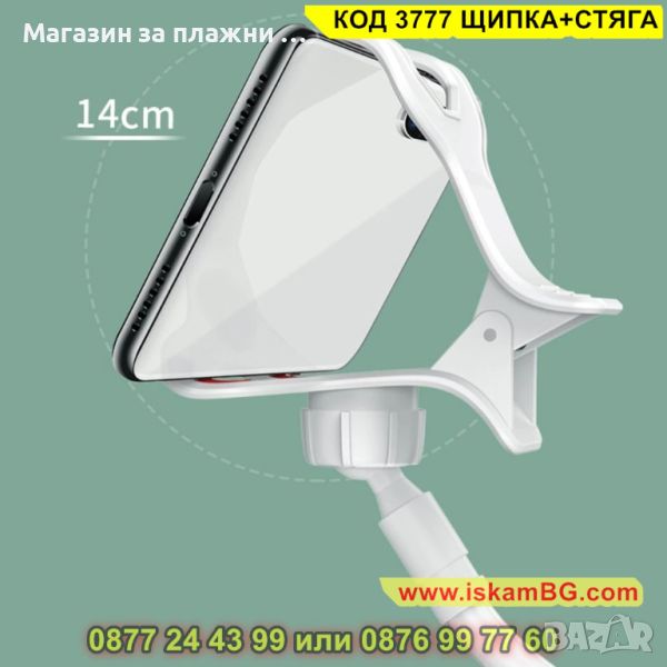 Държач за телефон тип щипка - подходяща за телефони или таблети с широчина до 12см
