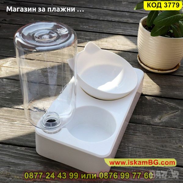 Разпределител за храна и вода - автоматична поилка/хранилка; Много удобен начин да оставите кучето си без притеснение само през целия ден.