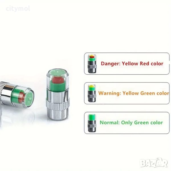 4 капачки за вентили с индикатор за налягане