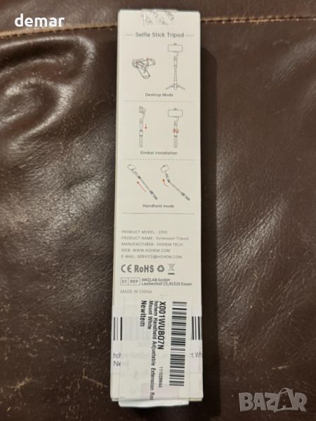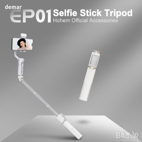 hohem EP01 регулируем селфи стик, съвместим с hohem/DJI/Feiyu/Zhiyun Mobile Gimbal с 1/4" резба, бял