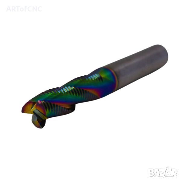 Изключително подходящ при фрезоване на канал (slotting), при работа с рутери и фрези без охлаждаща система или такива с въздушно охлаждане. Допълнителните нарези по спиралата спомагат за чупене на стружките и по-лесното им евакуиране от работната зона.