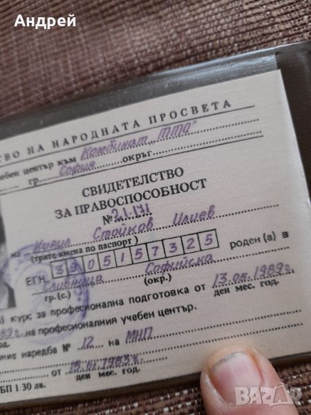 Старо свидетелство за правоспособност, снимка 1 - Колекции - 45128053 Старо свидетелство за правоспособност, снимка 2 - Колекции - 45128053 Старо свидетелство за правоспособност, снимка 3 - Колекции - 45128053 Старо свидетелство за правоспособност, снимка 4 - Колекции - 45128053 1/4