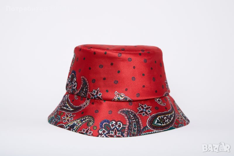 Класическа Bucket дамска шапка изработена от плътен сатен, с уникален авторски десен на Stefanett.
