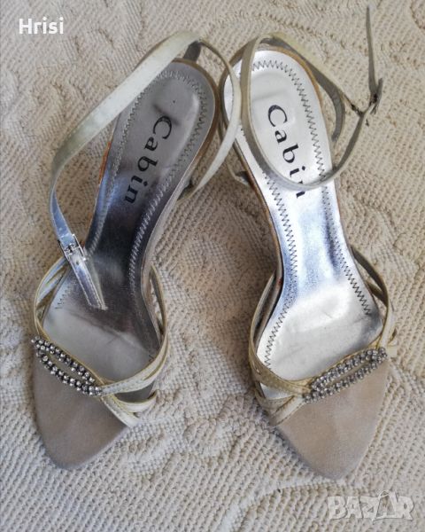 4. Нежни златисти сандали на ток, обувани веднъж.