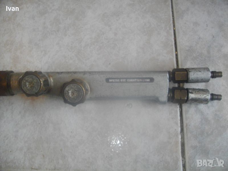 Описание на MESSER GRIESHEIM STAR 2000 - цялостна дължина 555 мм с двата адаптера/бързи връзки отзад. 4 спирателни крана/въртоци. Алуминиев изцяло.