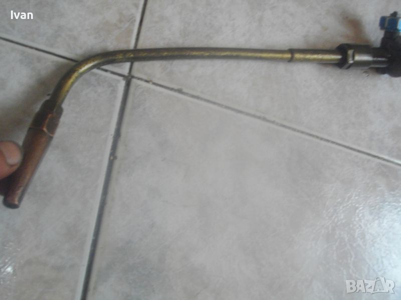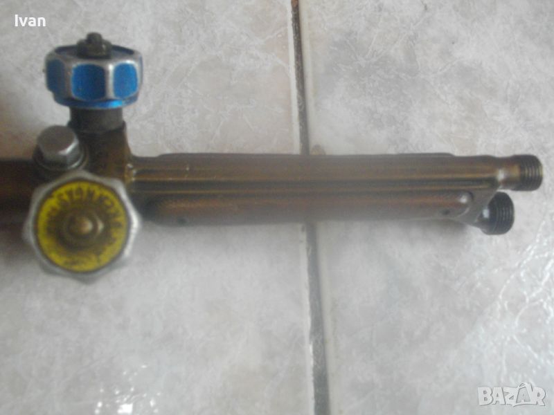 ОПИСАНИЕ на резак 43 см - 199 лв. Старо немско професионално качество. Марка - EWO. Дължина 43 см. Ползван, в отлиично състояние. Бронзов изцяло с бакелит покртия на дръжката. 3 въртока спирателни кранове и 1 голям бронзов върток спирателен. Медна контактна дюза размер 2-33 мм, с 1 дупка за пламъка. Тегло на резака - 1,5 кг.