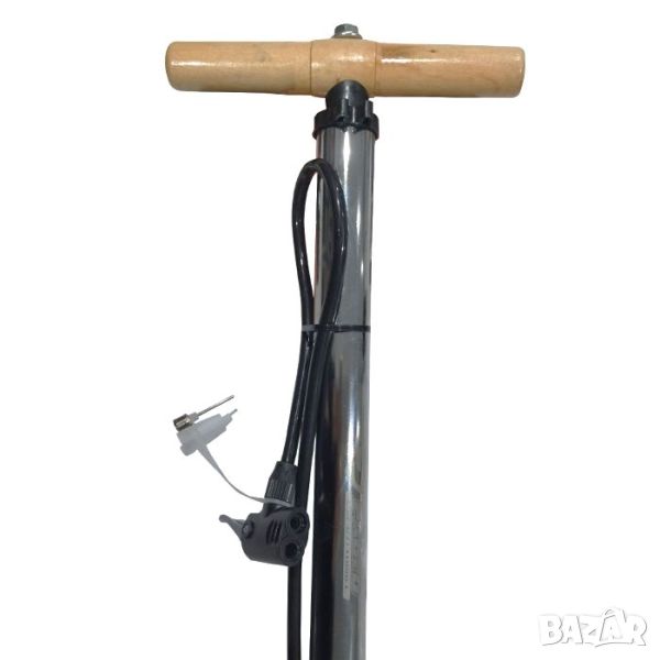Удобна дървена дръжка за помпане и алуминиев корпус.