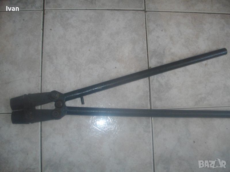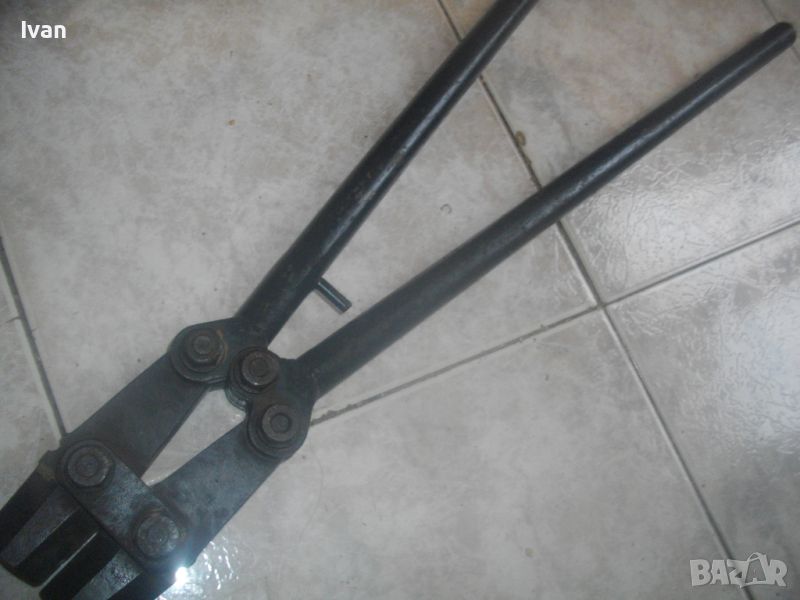 Цена на тъмнозелена къса професионална ножица за рязане на арматура /тел /мрежа ограда - 640 мм - българска - старо качество - НРБ - с челюсти, които се обръщат при износване на едната страна - 2,5 кг - цена 199 лв.Старо българско соц качество. Дължина ножицата 64 см, отваряне до 20 мм. Отлично състояние, челюсти отлични без наранявания. Дръжки тръби ф 20 мм. Челюстите остриета са заточени от двете страни и могат да се обръщат, когато се износят от едната страна. Тегло на ножицата - 2,5 кг. Цена 199 лв.