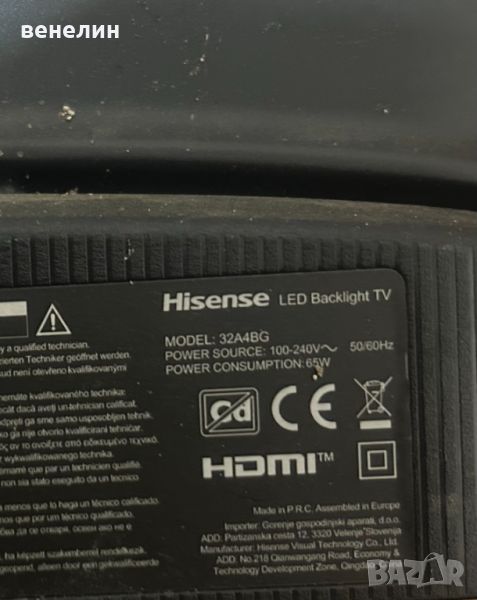 Частите са свалени от телевизор със счупена матрица HISENSE32A4BG