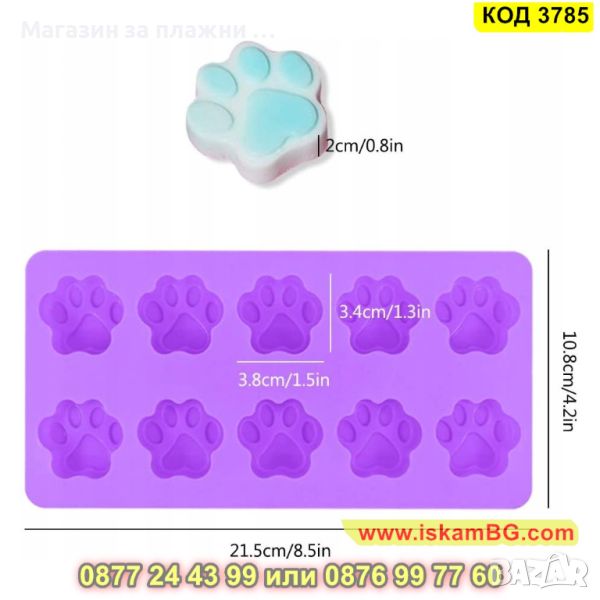 Пакетът включва 1 брой силиконофа форма с 10 лапички