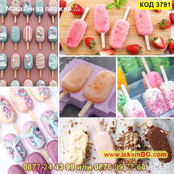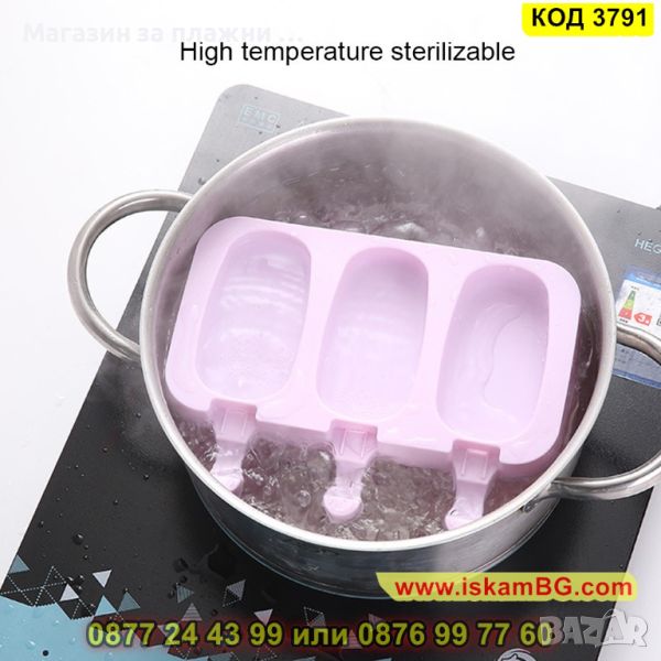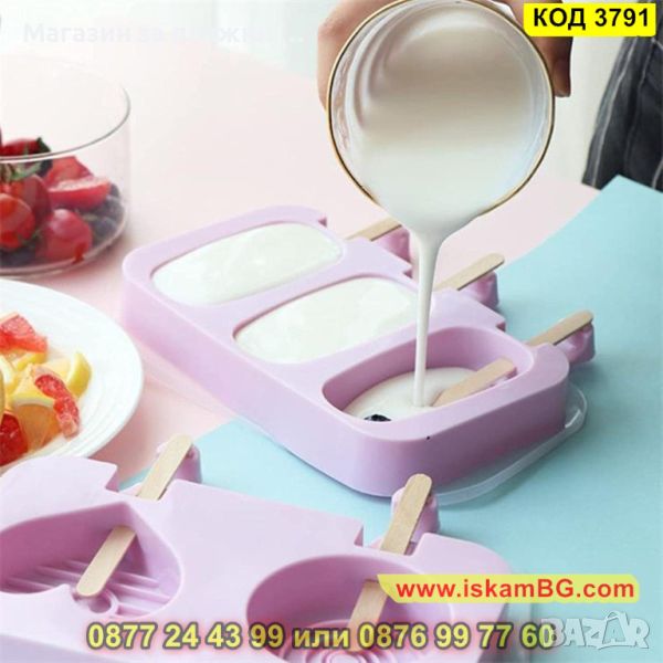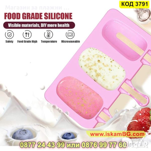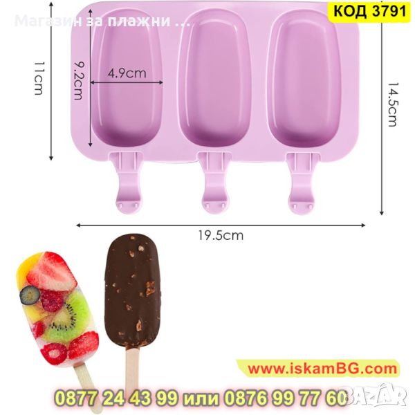 Силиконова форма за 3 броя овални сладоледа - 1 брой