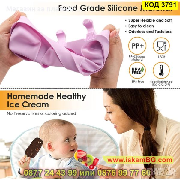 Силиконовата форма е за 3 броя сладолед с три еднакви формички - Класически Ескимо.