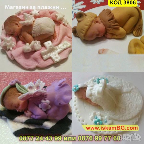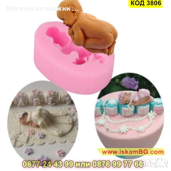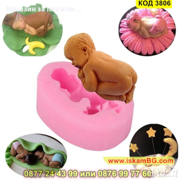 Силиконов молд за изработване на бебешка отливка Спящо бебе за декорация на торта, мъфини, меденки за бебешко парти.