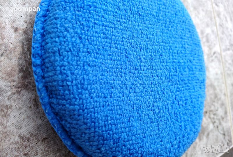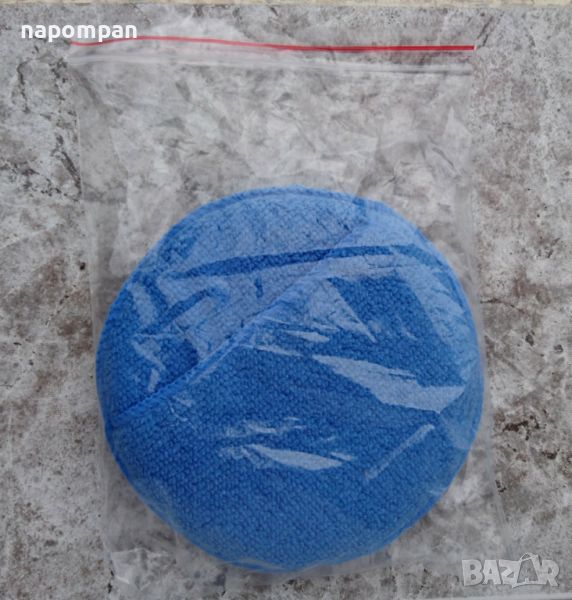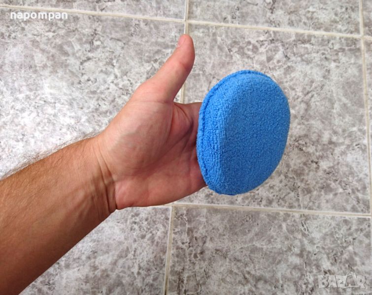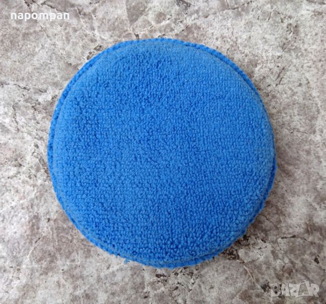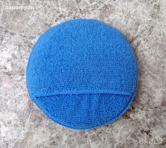 Микрофибърна ръковхатка / тампон за почистване и полиране на автомобили, прозорци, мебели и др. За разлика от обикновените микрофибърни кърпи, тази микрифибърна гъба има отделение за пръстите на ръката, с което почистването става по-удобно и лесно. Син цвят и кръгла форма. Мек дунапрен покрит с микрофибър.
