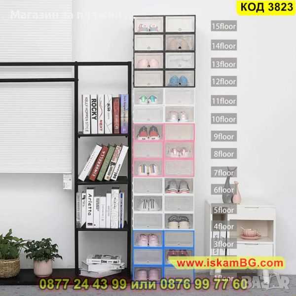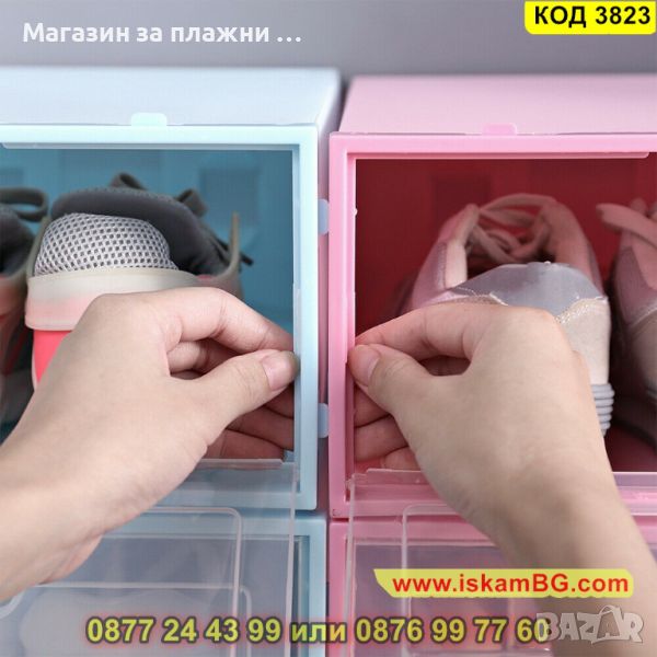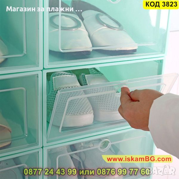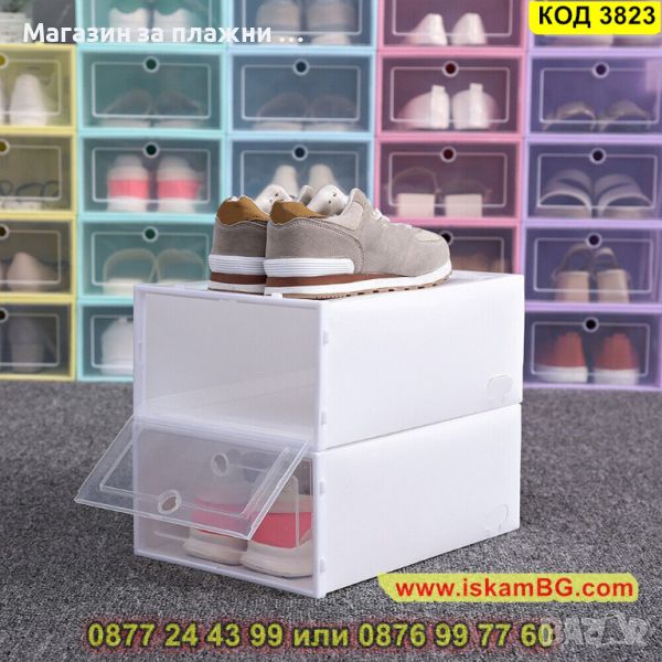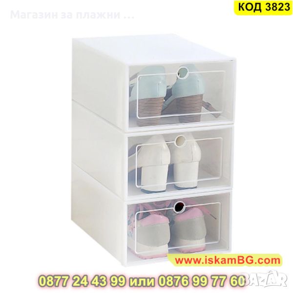 Прозрачната пластмасова кутия за обувки, която ние Ви предлагаме ще внесе желания уют и ред при подреждането на обувките Ви!Тя ще Ви подари 30% повече свободно пространство за съхранение на любимите Ви обувки.Подходяща е, както за дамски, така и за мъжки обувки. Предлагаме я в 2 размера - среден размер за дамски обувки 31 х 21 х 12 см и голям размер за мъжки обувки 33 х 23.5 х 13.5 см. всеки чифт от обувките си има място, като ще бъдат предпазени от прах и замърсявания. Освен това, всяка кутия си има прозрачна вратичка, където ще можете лесно да намерите търсения от Вас чифт, без да изваждате всички чифтове обувки докато достигнете до желания чифт. Единственото, което трябва да направите е да отворите вратата и да вземете желания от Вас чифт!