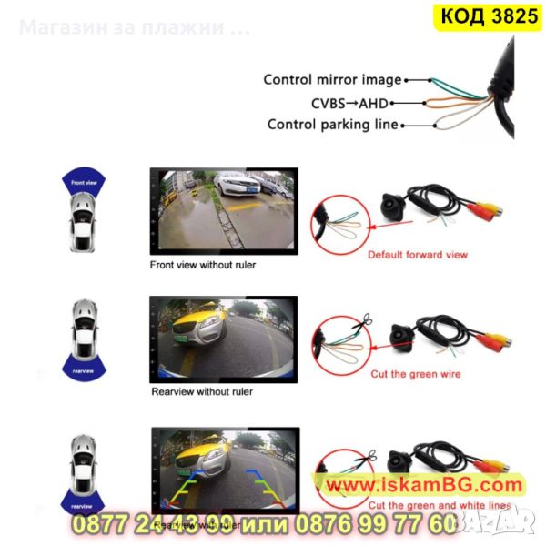 1. възможност за обръщане на изображението хоризонтално - за да направите това, отрежете зеления кабел