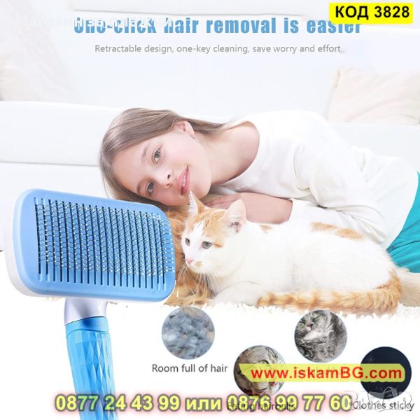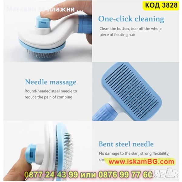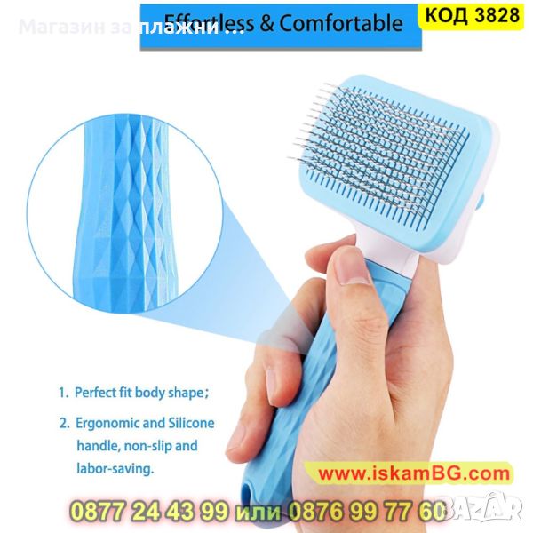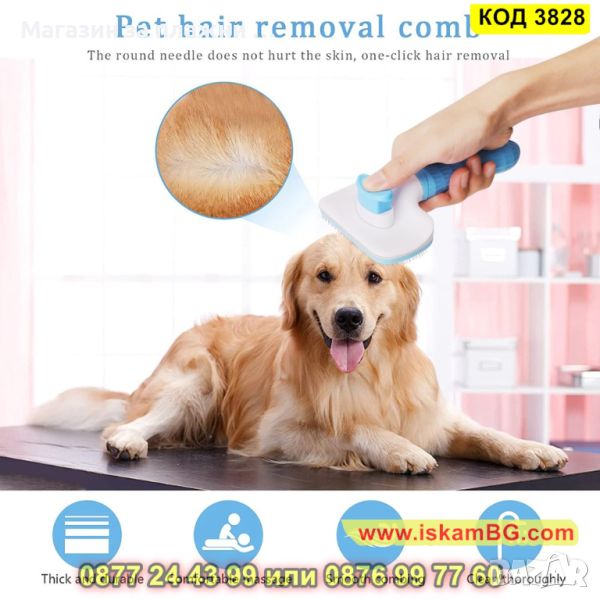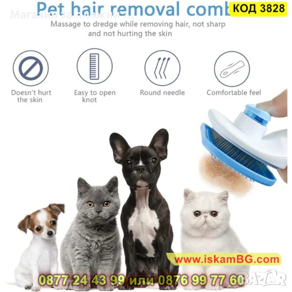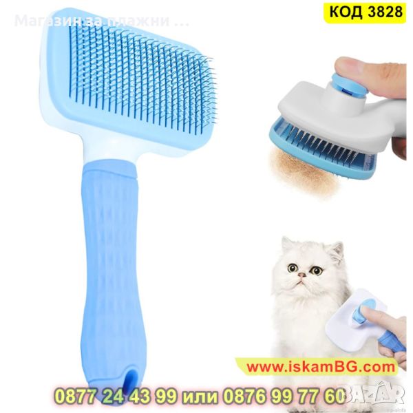 Четка за почистване и грижа за козината на кучетата и котките, със самопочистващ се бутон - КОД 3828