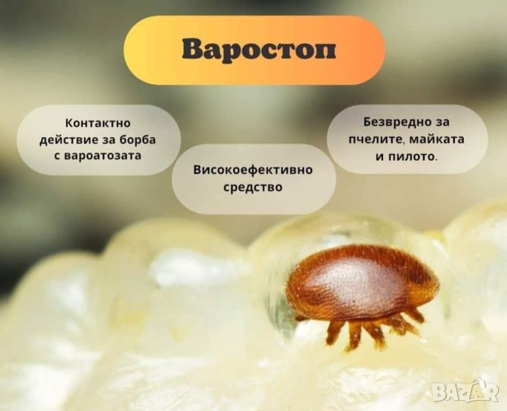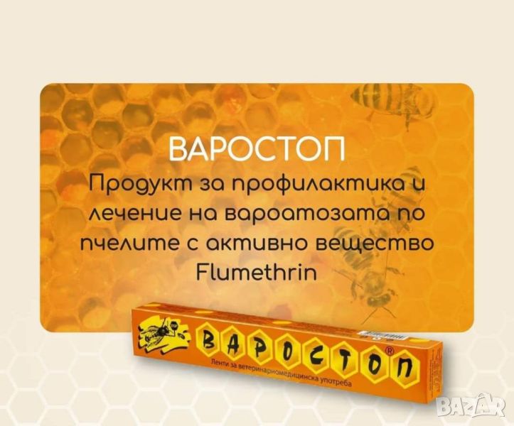 Срещу акара Varroa destructor с 99,9% ефикасност. Варостоп представлява ленти от фурнирно дърво, върху които е нанесено активното вещество флуметрин.