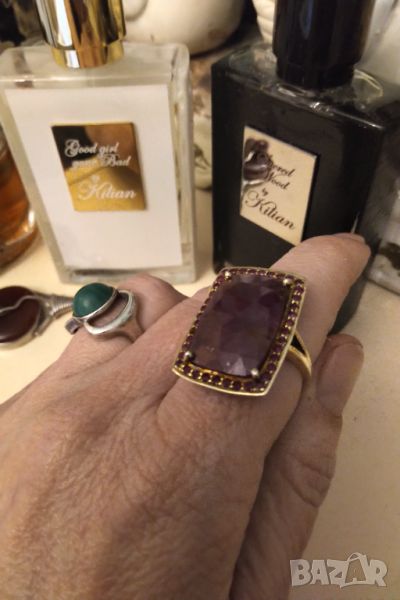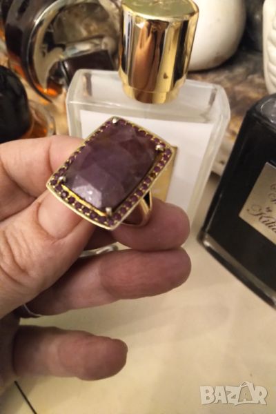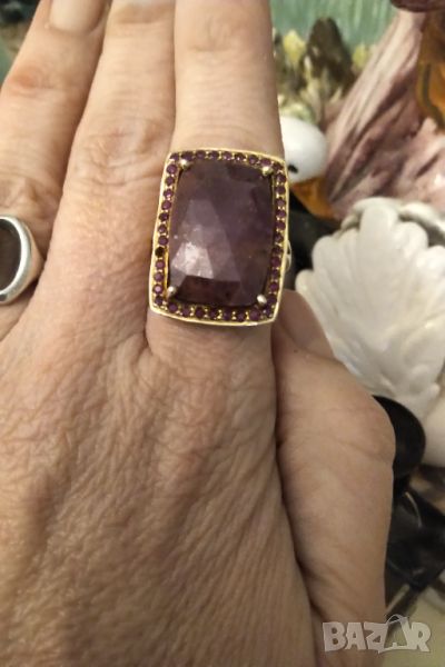Изумителен .Ръчно изработен сребърен пръстен с висококачествени естествени рубини .Масивно позлатен .Основният камък е розов рубин а по малките червени ( от тях липсва един едва се забелязва и е съобразено с цената ) .Размер 22 мм Главата е 2,8 на 2,1 см .ЦЕНАТА НЕ ПОДЛЕЖИ НА КОМЕНТАР ( ЗА ЦЕНИТЕЛИ И КОЛЕКЦИОНЕРИ ) БАРТЕРИ НЕ МЕ ИНТЕРЕСУВАТ