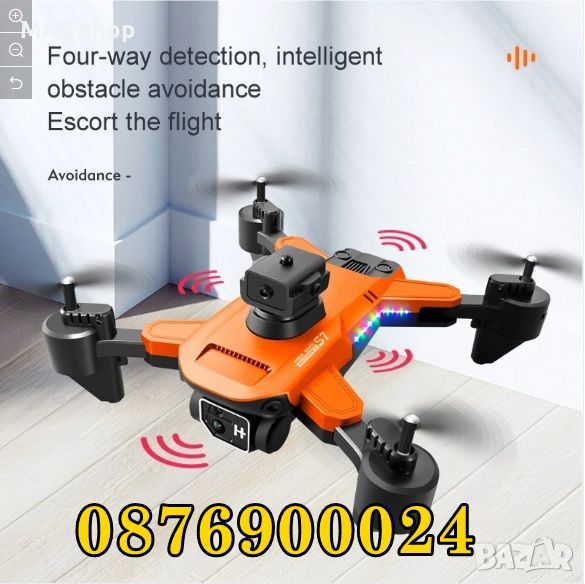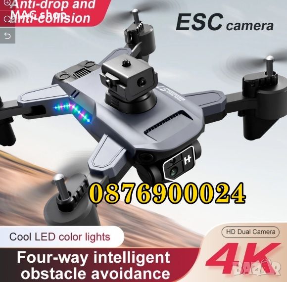 ПРОМО! Дрон S7 PRO Обхват 3км Ветроустойчив Двойни камери + КАЛЪФ