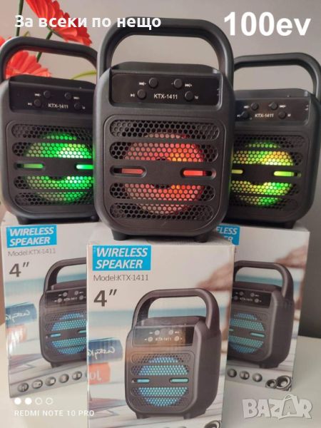 Bluetooth колона със дръжка и WiFi с вградена акумулаторна батерия, 4 инча високоговорител, , кабел, със стойка за телефон,FM ,USB,СЛОД ЗА SD карта