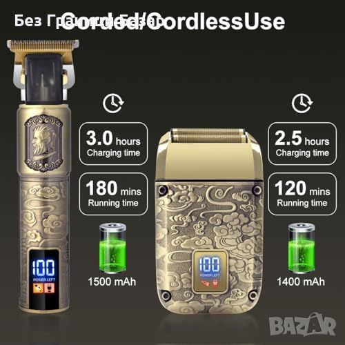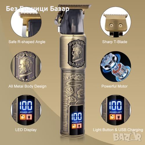 Включва T-образни машинки, 4 накрайника (1/3/5/7мм), 2 USB кабела, 2 четки за почистване