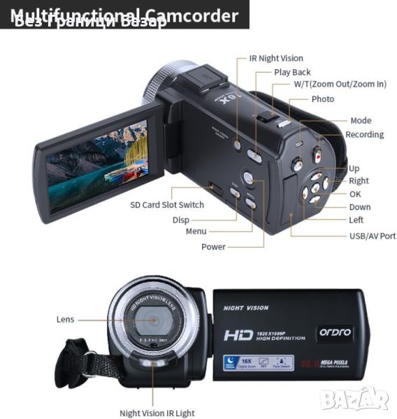 Цифрова видеокамера ORDRO V12, Full HD 1080P