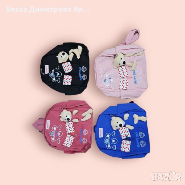 Детска ученическа раница с мече Happy Day2 Fashion/ Размер: 30x23x10cm/Цвят: розов, син, черен, червен / Удобна ученическа раница в атрактивен и весел дизайн и 3D мече, с допълнителни странични джобчета; от непромокаема и здрава материя; закопчаване: с цип; с удобни, меки дръжки за раменете;
